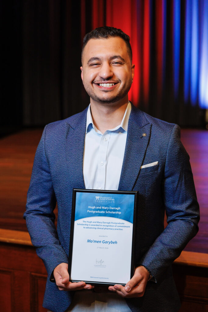The Pharmaceutical Society of Australia (PSA) Foundation is delighted to announce the recipient of the inaugural Hugh and Mary Darragh Postgraduate Scholarship, Mo’men Garybeh.
